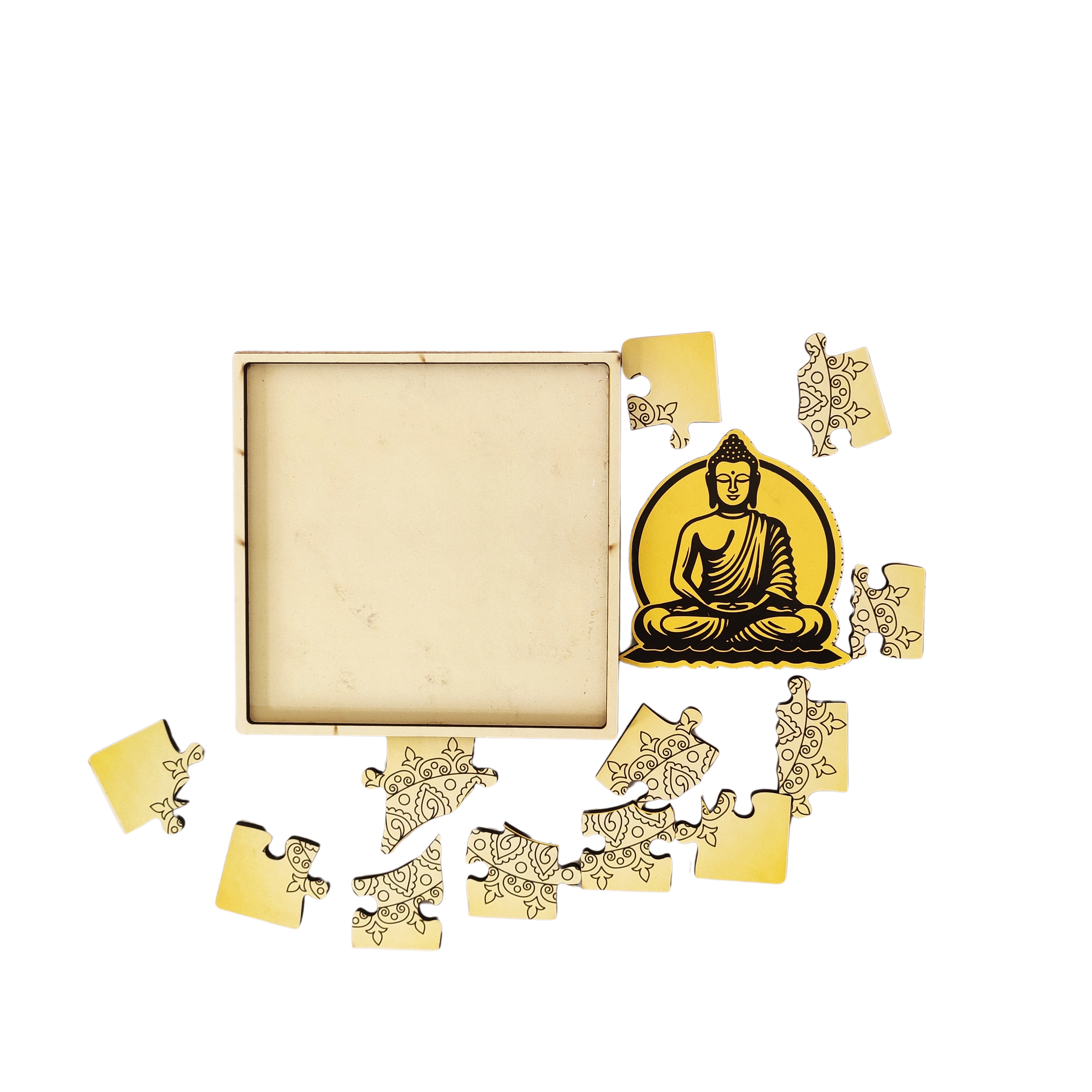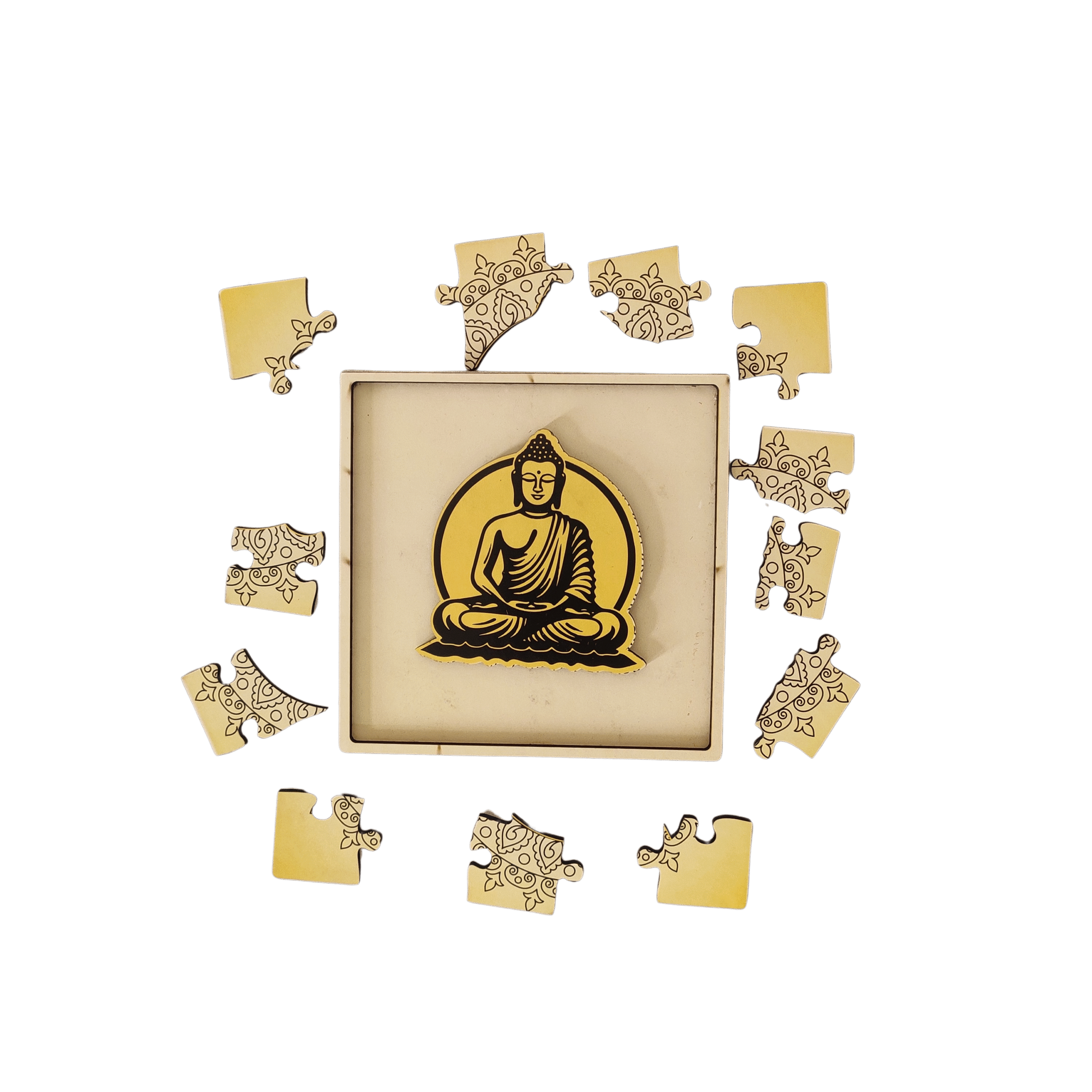 Discover peace, focus, and creativity with the Lord Buddha MDF Puzzle, a beautifully designed 13-piece jigsaw puzzle created to enhance mental wellness and mindfulness across all age groups. Made from eco-friendly MDF and precision laser-cut, this 5×5 inch puzzle features classic jigsaw-shaped pieces forming a serene image of Lord Buddha, accompanied by a detailed mandala illustration that invites users to color and personalize the experience.