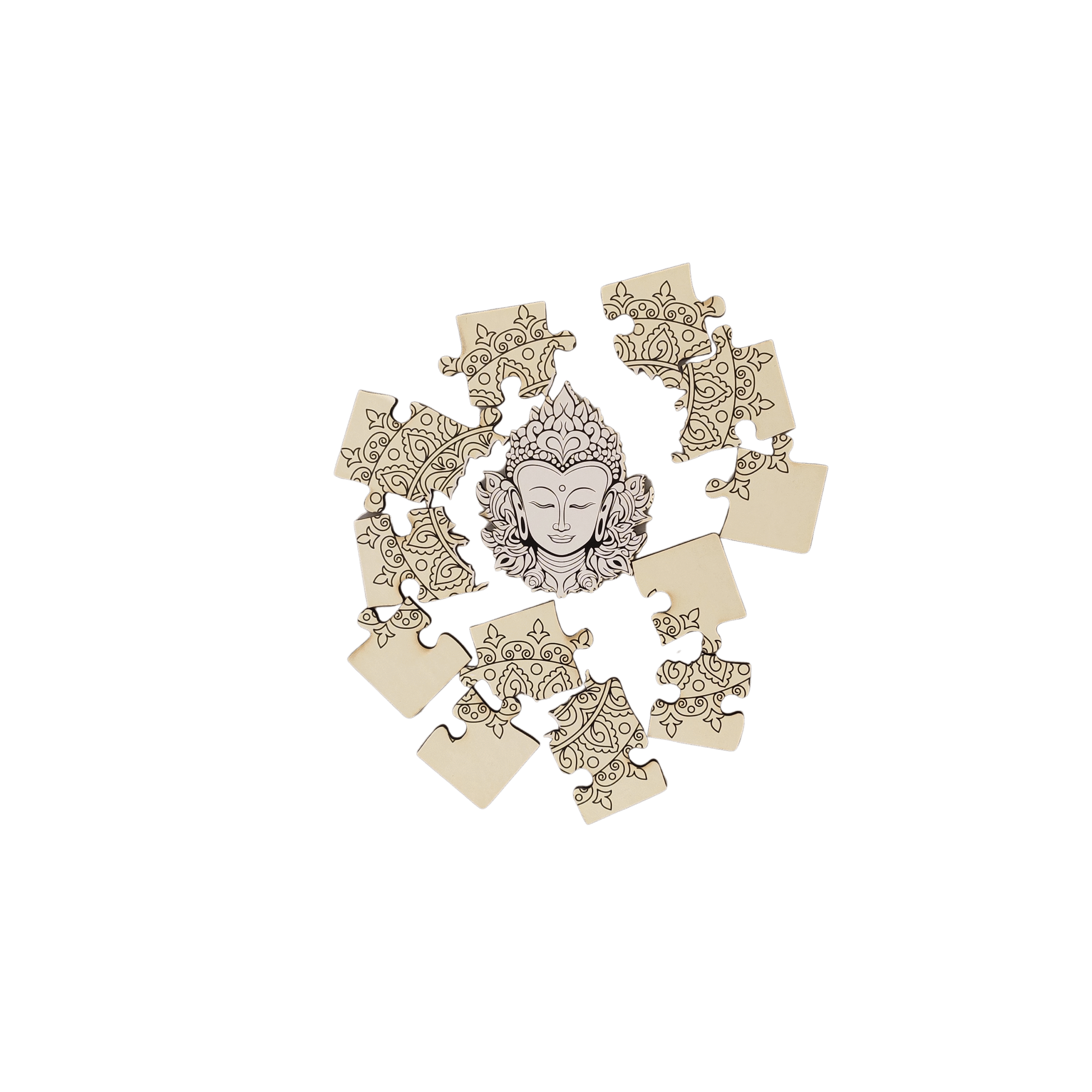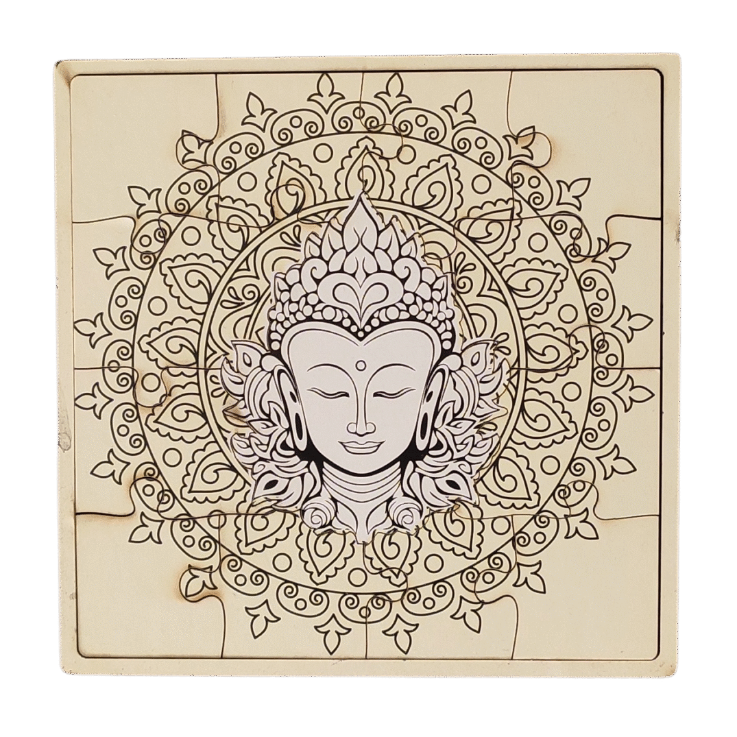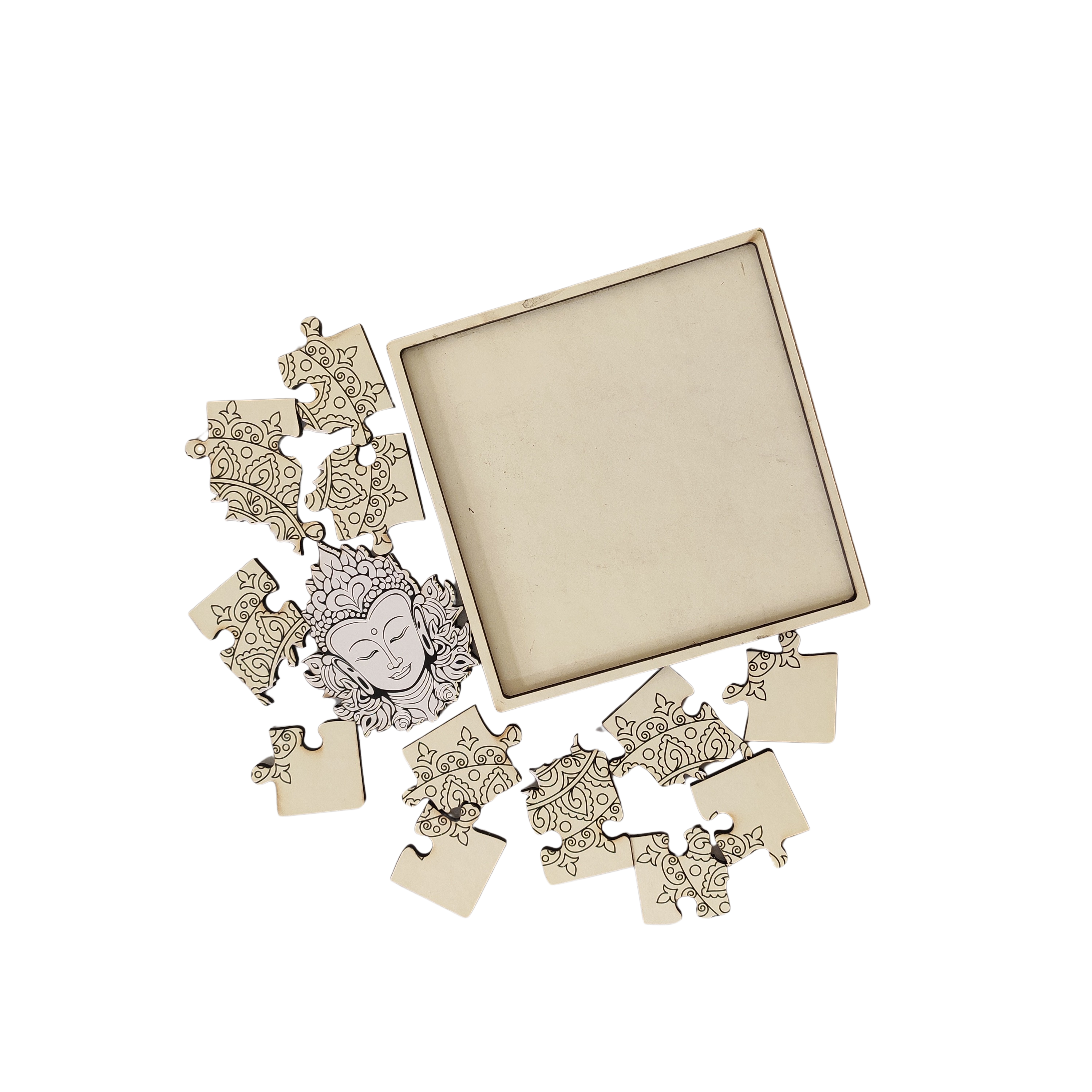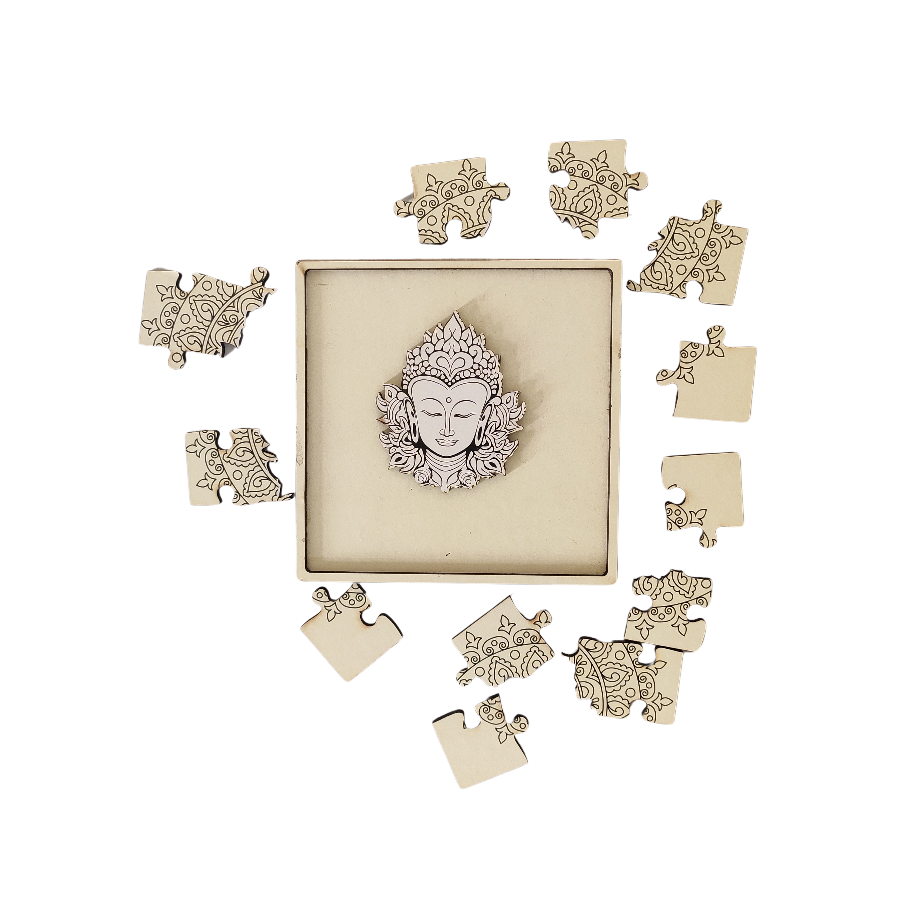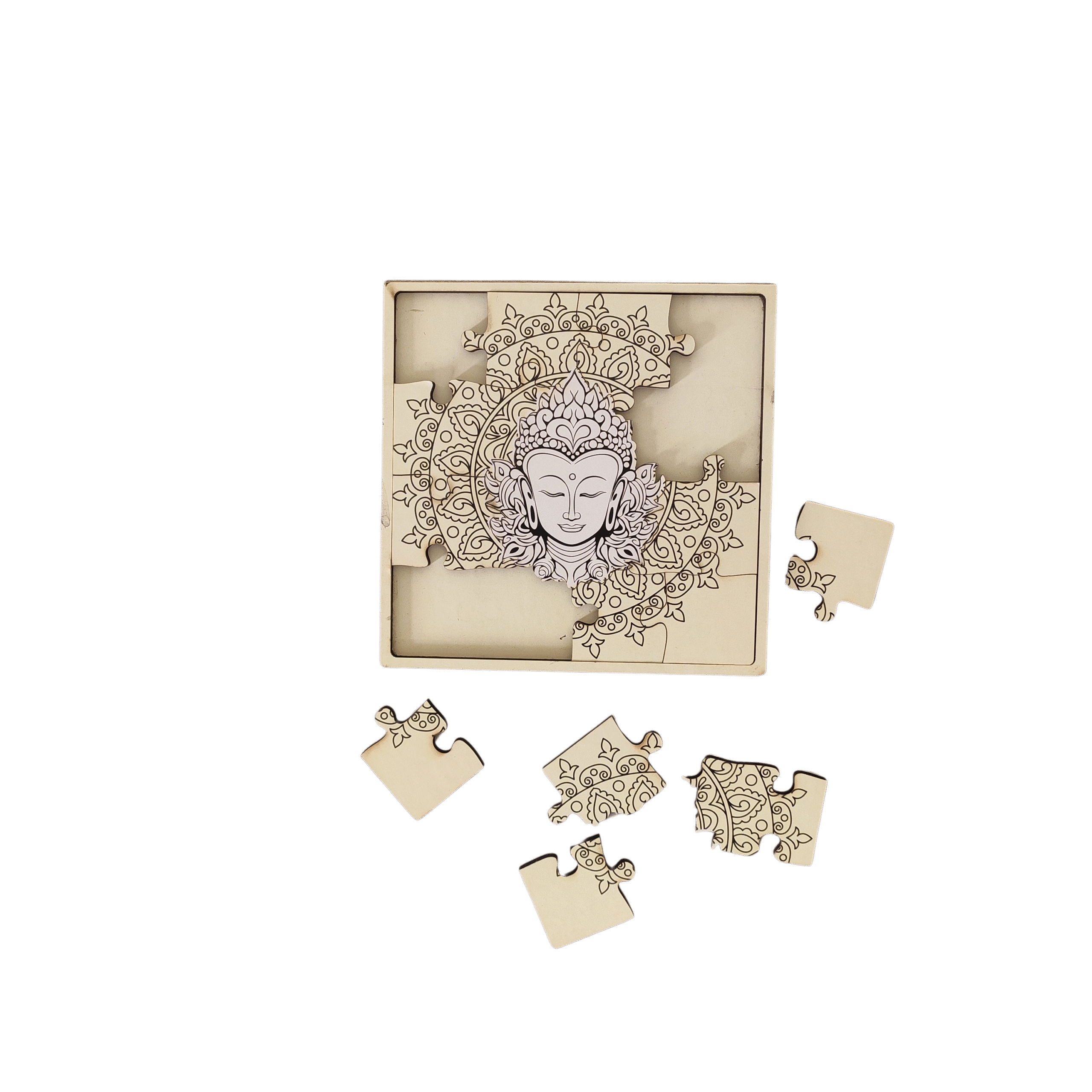 Find calm and creativity in one mindful activity with the Lord Buddha Mandala MDF Puzzle – a beautifully designed 13-piece jigsaw puzzle crafted to support mental wellness for people of all ages. Made from smooth, durable laser-cut MDF, this compact 5×5 inch puzzle features classic jigsaw-style pieces forming a serene image of Lord Buddha, surrounded by an intricate mandala illustration that users can color to make the experience even more personal and engaging.
